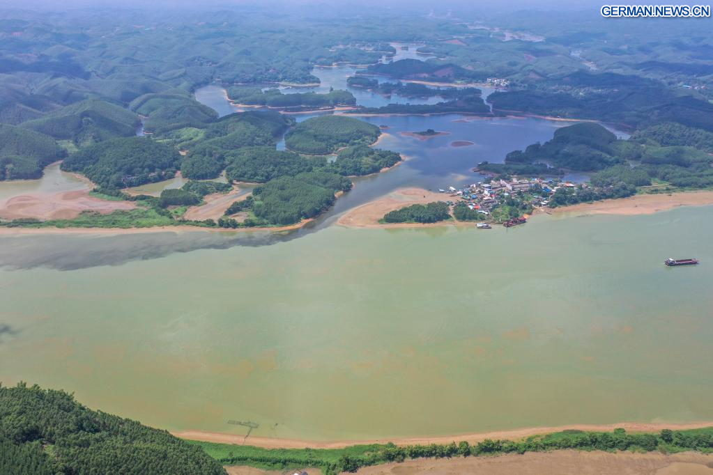 LINGSHAN, 28. August 2022 (Xinhuanet) -- Das am 27. August 2022 aufgenommene Luftbild zeigt einen Abschnitt des Kanals Pinglu in der Stadt Hengzhou im südchinesischen Autonomen Gebiet Guangxi der Zhuang. (Quelle: Xinhua/Cao Yiming)