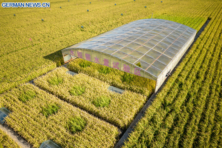 HARBIN, 5. September 2022 (Xinhua) -- Das Foto zeigt eine Versuchsfläche für das Bewässerungsvolumen in einem Demonstrationspark für Reisanbautechnologie in der Stadt Fujin in der Provinz Heilongjiang im Nordosten Chinas, 2. September 2022. Modernste Informationstechnologien, darunter das Internet der Dinge (IoT) und Cloud-Computing, werden im Demonstrationspark in den Bereichen Anbaumanagement, sparsame Bewässerung, Wetterüberwachung, Verfolgung des Kornwachstums sowie Schädlings- und Unkrautbekämpfung eingesetzt, um sowohl die Quantität als auch die Qualität der Reisproduktion zu verbessern. (Xinhua/Zhang Tao)