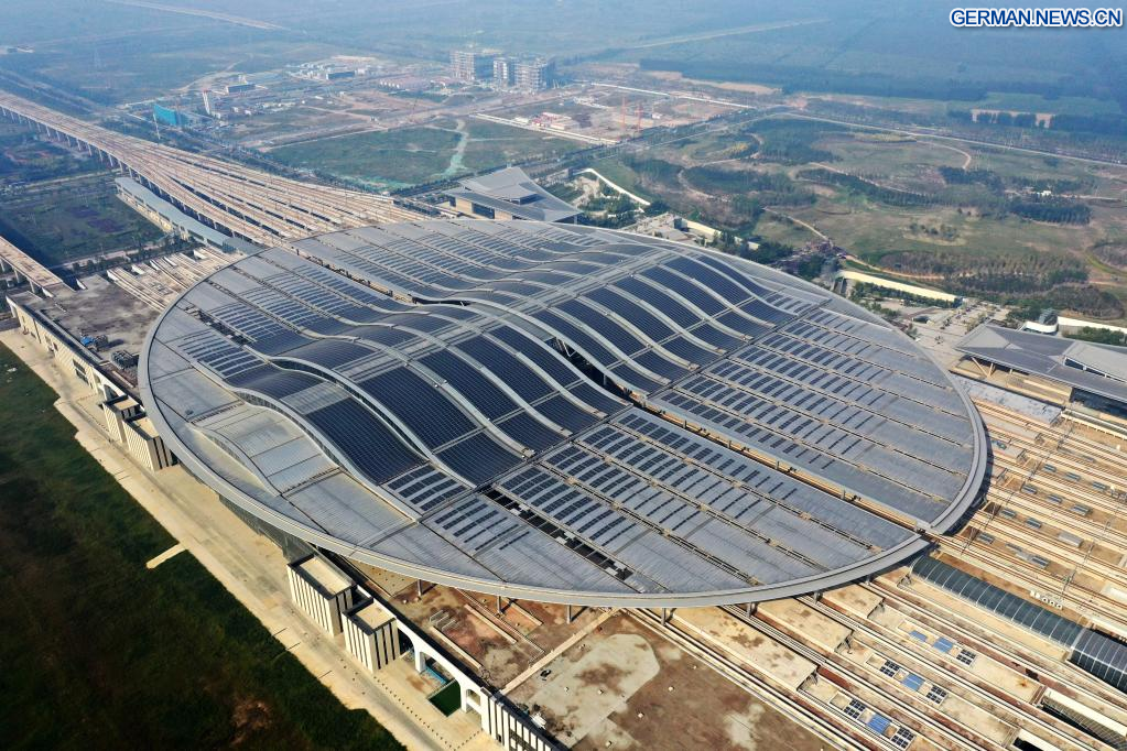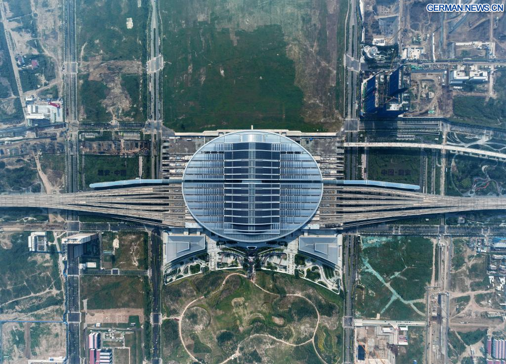 XIONG'AN, 10. September 2022 (Xinhuanet) -- Das am 9. September 2022 aufgenommene Luftbild zeigt den Bahnhof Xiong'an in der Xiong'an New Area der nordchinesischen Provinz Hebei. (Quelle: Xinhua/Zhu Xudong)