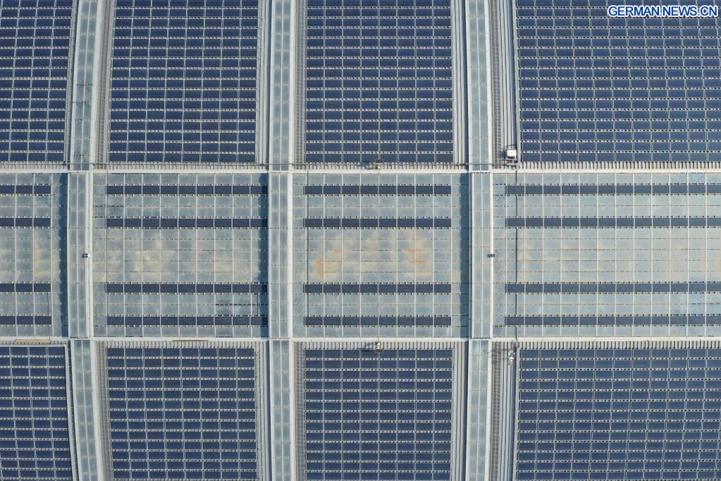 XIONG'AN, 10. September 2022 (Xinhuanet) -- Das am 9. September 2022 aufgenommene Luftbild zeigt ein verteiltes Photovoltaikkraftwerk auf dem Dach des Bahnhofs Xiong'an in der Xiong'an New Area der nordchinesischen Provinz Hebei. (Quelle: Xinhua/Zhu Xudong)