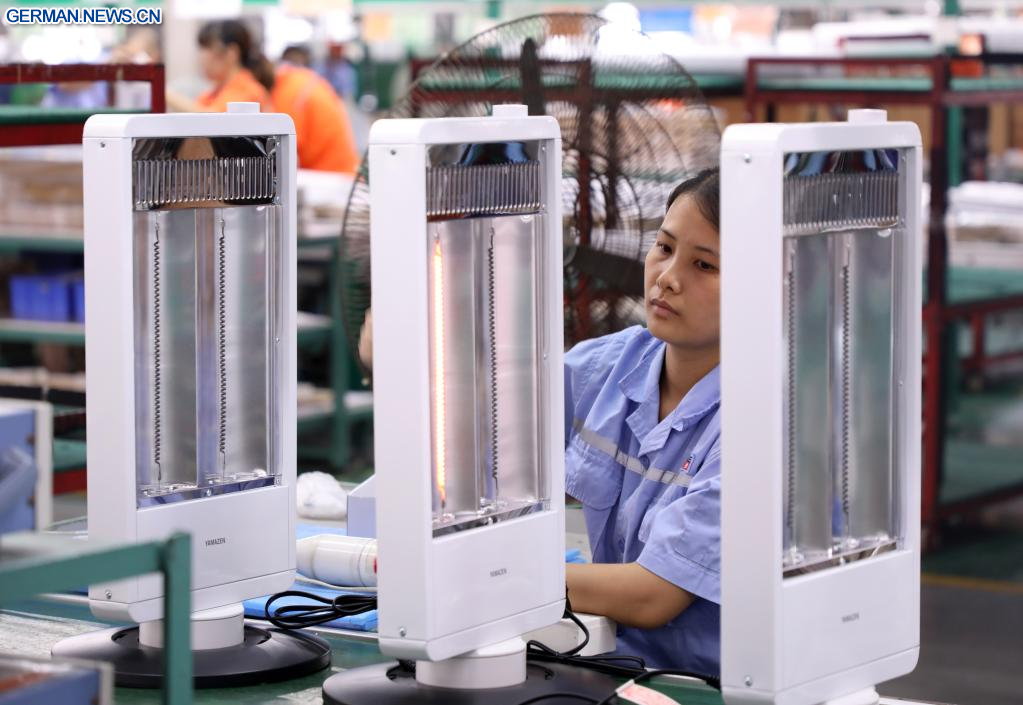 FOSHAN, 9. Oktober 2022 (Xinhuanet) -- Arbeiter arbeiten an der Produktionslinie für elektrische Heizgeräte in einem Unternehmen in Foshan in der südchinesischen Provinz Guangdong, 29. September 2022. Von Juni bis August dieses Jahres exportierte Foshan Heizungsausrüstungen im Wert von 94 Millionen Yuan (etwa 13,2 Millionen US-Dollar) in Länder der Europäischen Union, was einem Anstieg von 154,4 Prozent gegenüber dem Vorjahr entspricht. (Quelle: Xinhua/Huang Guobao)