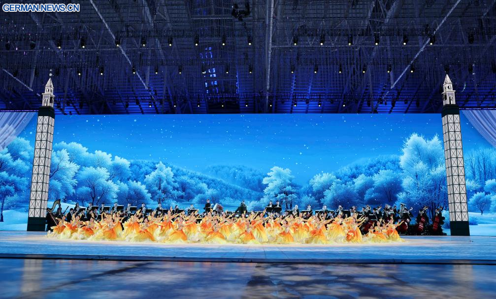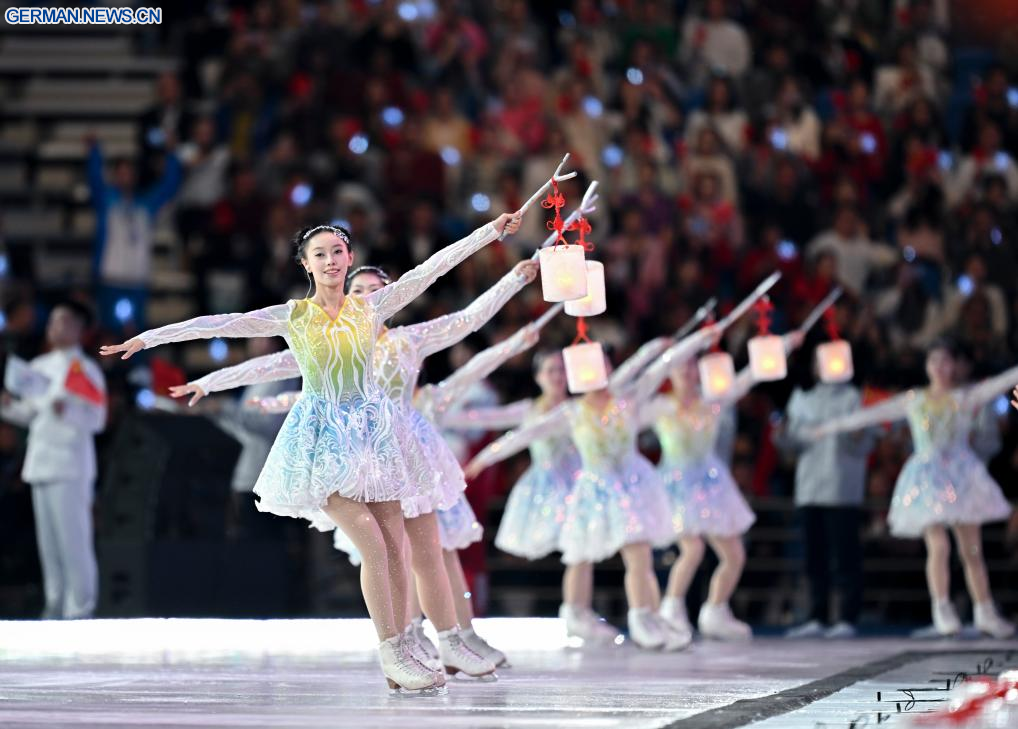 HARBIN, 14. Februar 2025 (Xinhuanet) -- Künstler treten während der Abschlusszeremonie der 9. Winter-Asienspiele in Harbin in der nordostchinesischen Provinz Heilongjiang auf, 14. Februar 2025. (Quelle: Xinhua/Jiang Han)
