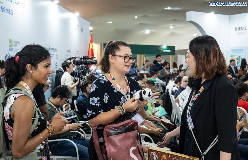 BELÉM, 15. November 2025 (Xinhuanet) -- Ein Gast präsentiert einen Faltfächer im China-Pavillon während der 30. Klimakonferenz der Vereinten Nationen in Belém, Brasilien, 12. November 2025. Die 30. Klimakonferenz der Vereinten Nationen, allgemein bekannt als COP30, wurde am Montag in Belém, Brasilien, eröffnet. Die Ausstellung chinesischer Kulturprodukte, grüner Technologien und Innovationen zog während der Konferenz die Aufmerksamkeit der Teilnehmer auf sich. (Quelle: Xinhua/Wang Tiancong)