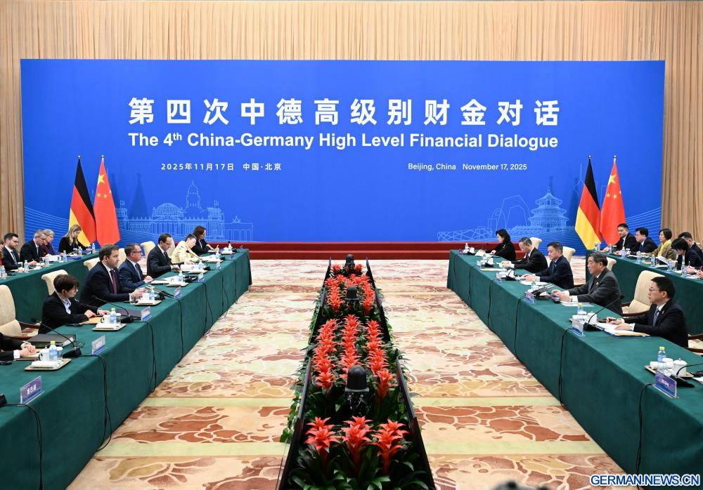 BEIJING, 17. November 2025 (Xinhuanet) -- Der chinesische Vize-Ministerpräsident He Lifeng leitet gemeinsam mit dem deutschen Vizekanzler und Bundesminister der Finanzen Lars Klingbeil den vierten hochrangigen chinesisch-deutschen Finanzdialog in Chinas Hauptstadt Beijing, 17. November 2025. He Lifeng war der chinesische Leiter im Dialog, während Klingbeil der deutsche Leiter war. (Quelle: Xinhua/Dai Tianfang)