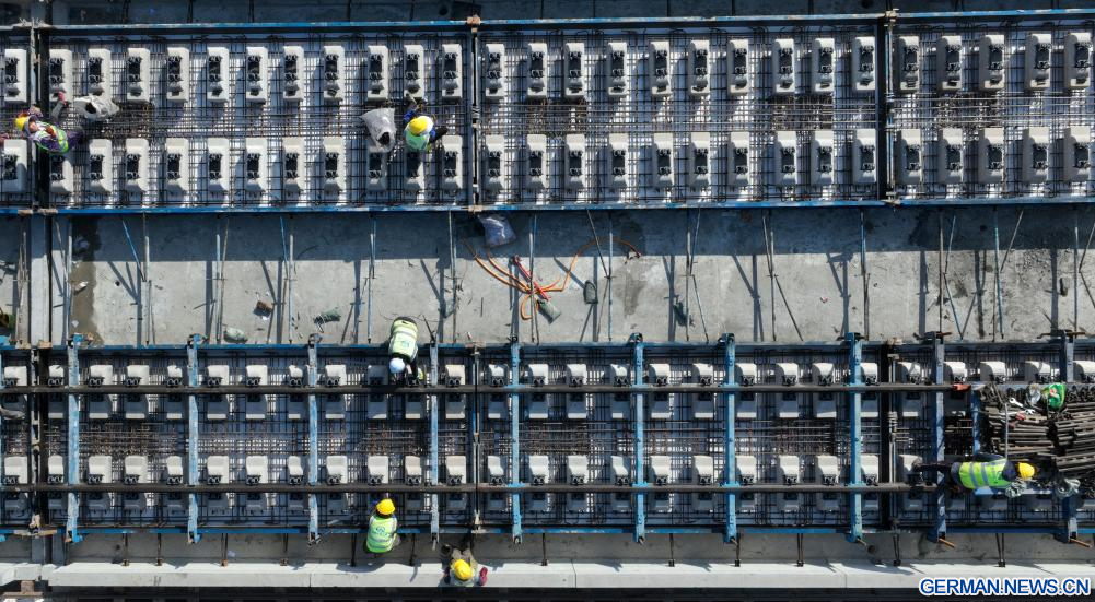ZHAOTONG, 7. Dezember 2025 (Xinhuanet) -- Die Luftaufnahme einer Drohne vom 7. Dezember 2025 zeigt eine Baustelle der Hochgeschwindigkeitsstrecke Chongqing-Kunming in Zhaotong in der südwestchinesischen Provinz Yunnan. (Foto von Zhang Guangyu/Xinhua)
